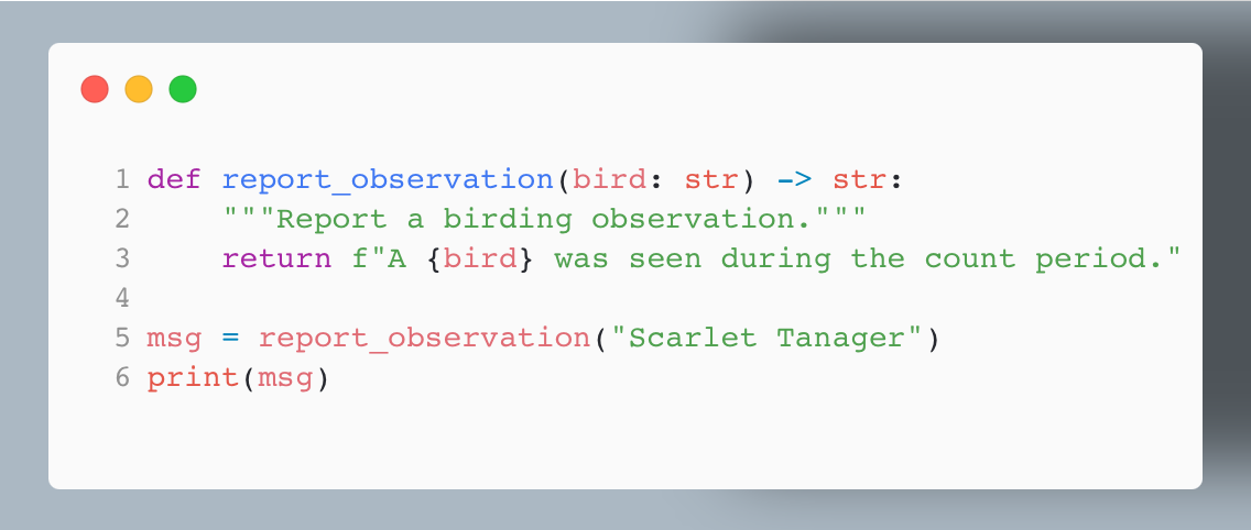 #Python people, I have a question about names. In the following example, what do you call the first line of this function (everything from `def` through the colon)?